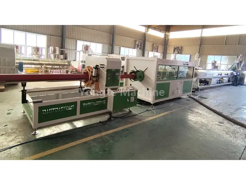 4. PVC குழாய் இழுவை இயந்திரம்: இந்த இயந்திரம் மல்டி-கேட்டர்பில்லர் டிரைவ் சிஸ்டத்துடன் பொருத்தப்பட்டுள்ளது, இதில் உயர் துல்லியமான சர்வோ மோட்டார்கள் மற்றும் இரட்டை-நிலை முறுக்கு-பெருக்கி கியர்பாக்ஸ் ஆகியவை அடங்கும். இந்த கட்டமைப்பு PVC குழாய்களின் நிலையான வெளியேற்றத்தை உறுதி செய்கிறது, இதன் மூலம் உற்பத்தி செயல்முறை முழுவதும் துல்லியமான பரிமாண துல்லியத்தை பராமரிக்கிறது. 400mm Pvc Pipe Production Equipment